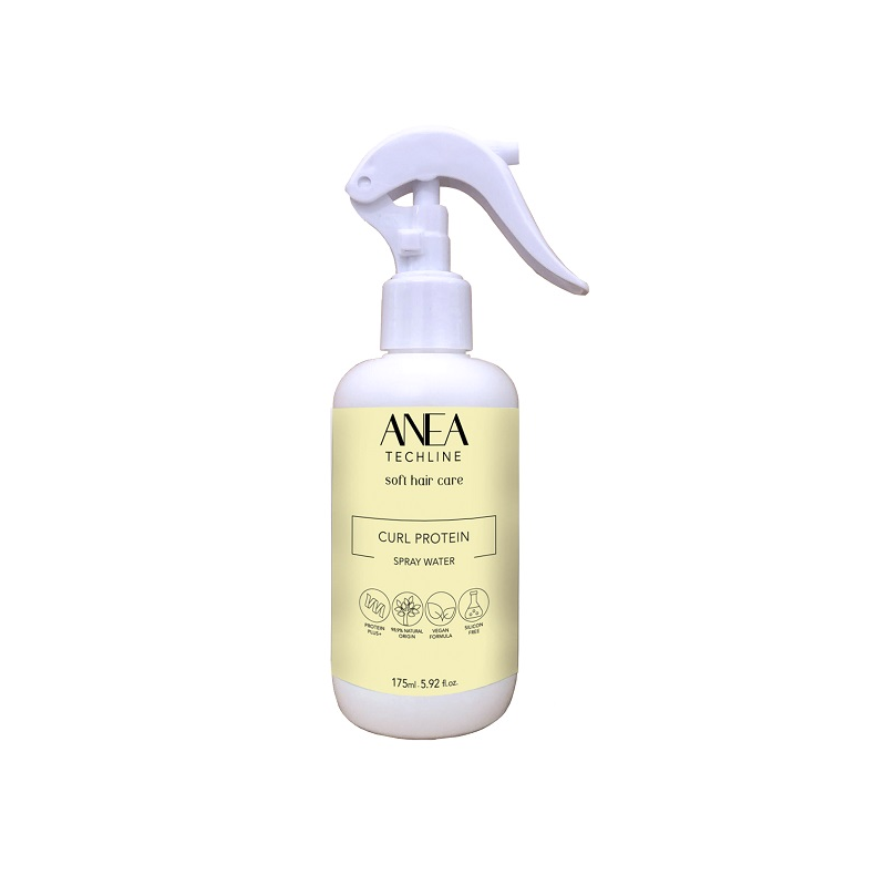 El Agua de Proteinas para rizos de Anea Techline utiliza una formula vegana y libre de siliconas que