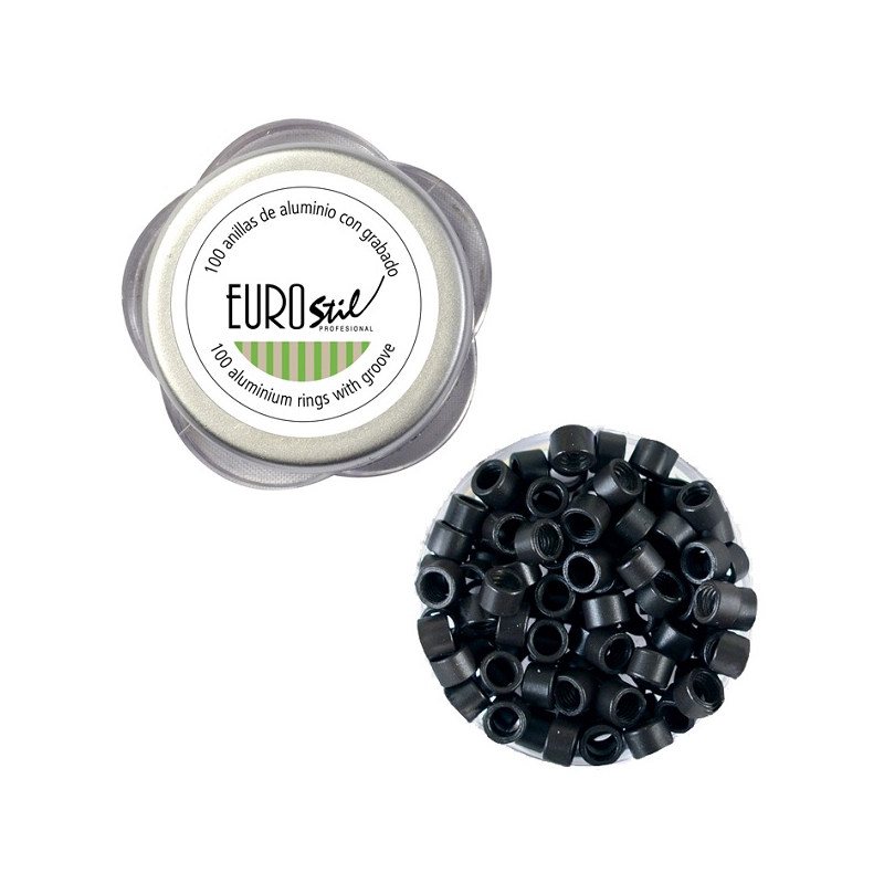 Bote de 100 anillas o grapas de color negro para fijar las extensiones de cortina o tejido.