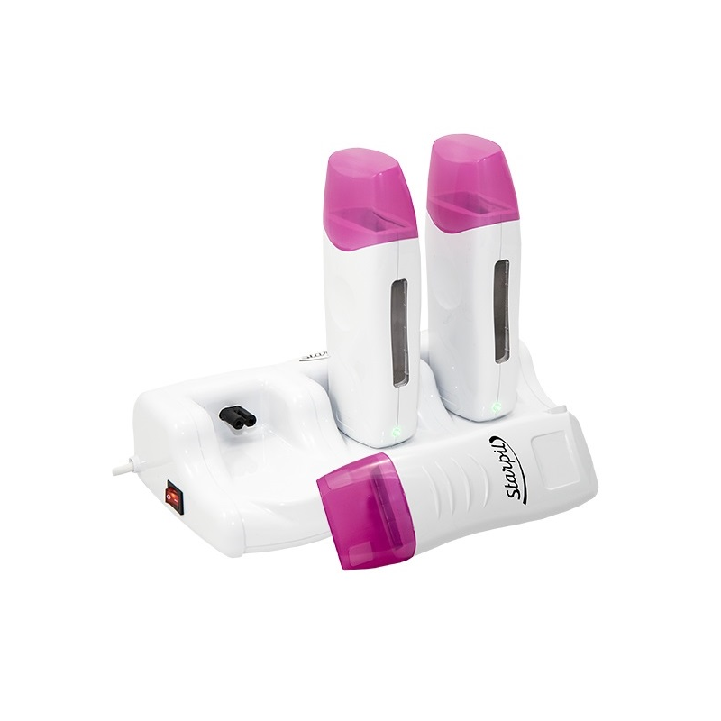 Calentador triple de rollon. Contiene 3 calentadores individuales, una base triple y un cable de alimentación.