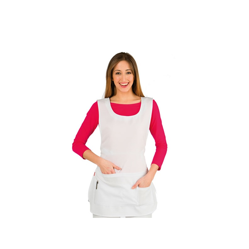 Estola 100 Poliester Strech. Ajustada por la espalda con un lazo. Con bolsillos delanteros grandes y cómodos.