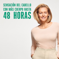 sensación de cabello con más cuerpo. A su vez, los polímeros de cuidado previenen la electricidad