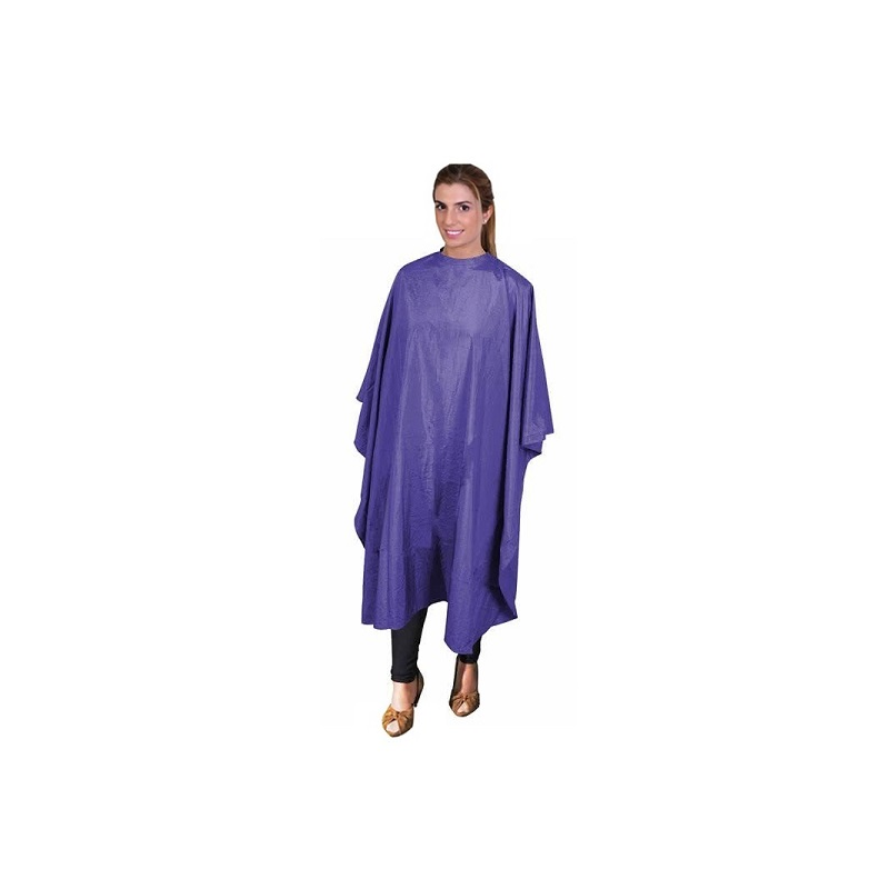 Capa de corte de nylon en color violeta con cierre de corchetes.