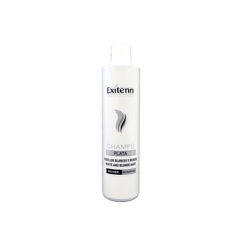 El CHAMPÚ PLATA de EXITENN es especial para cabellos blancos y rubios. aporta brillo