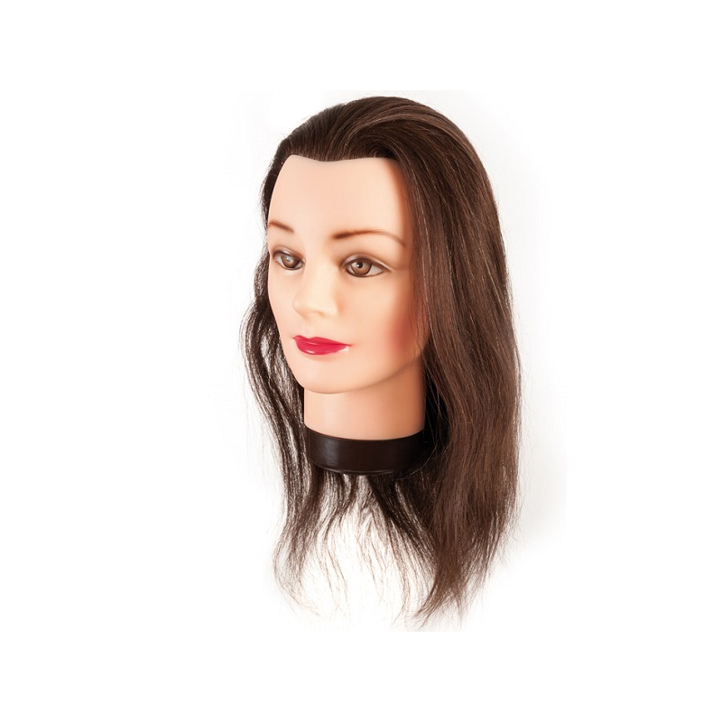 Maniquí de cabello castaño 100 natural de 3540 cms de largo. Para corte, decoloración,