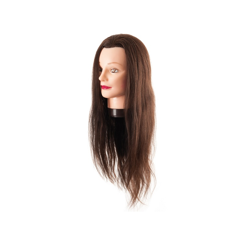 Maniquí de cabello castaño 100 natural de 5560 cms de largo. Para corte, decoloración,