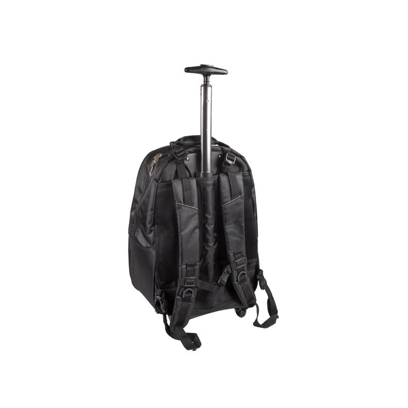 Mochila con ruedas de Poliéster. Diversos departamentos y separadores por todas partes, cerrados