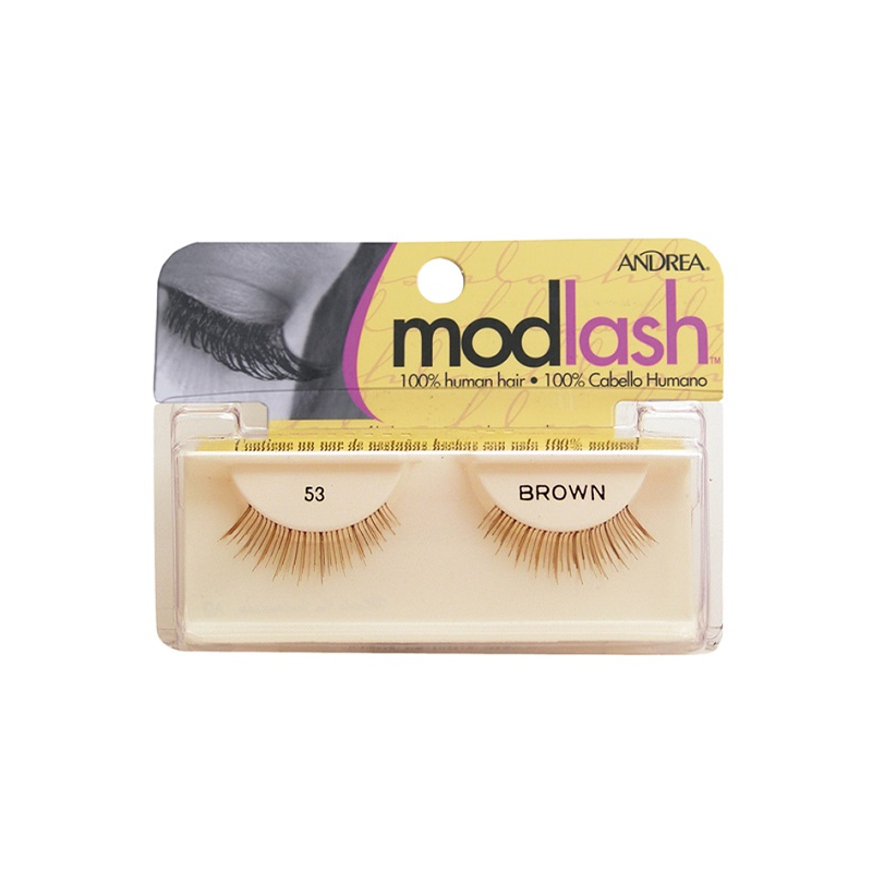 Pestaña completa, densa y más fina hacia las puntas, en color castaño.