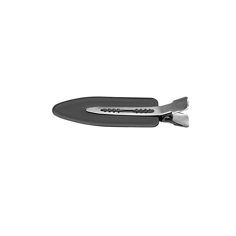Pinza negra con goma para no dejar marca en el pelo. Muy útiles para apartar el cabello en sesiones de maquillaje ya que no dejan marca.