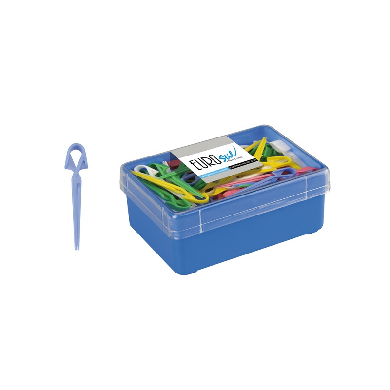 Caja de 60 pinzas de plástico para rulos de 6 cms de largo.