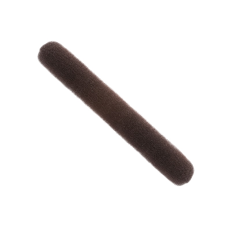 Relleno alargado para moño de color castaño oscuro. Con corchetes en los extremos para cerrarlo