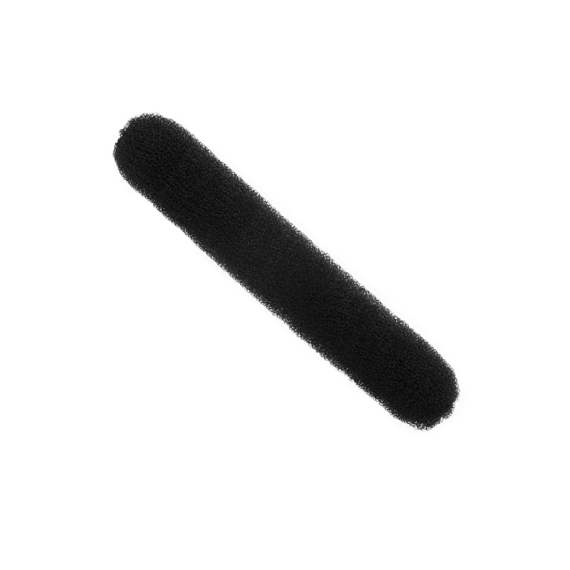 Relleno alargado para moño de color negro. Con corchetes en los extremos para cerrarlo en