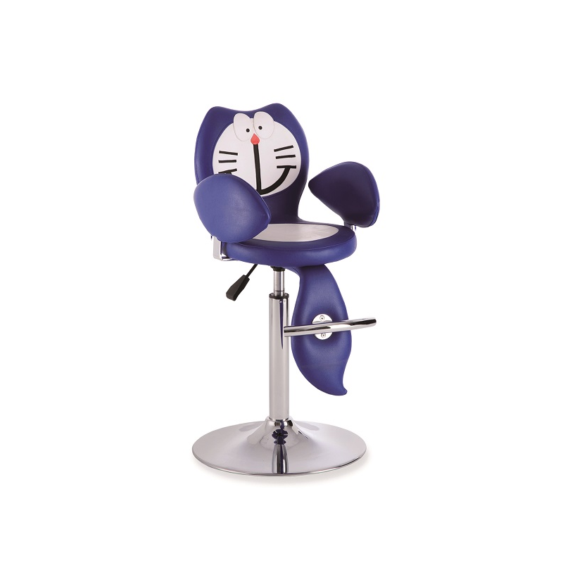 Asiento para niños en color azul, bomba de gas y base de disco cromada.