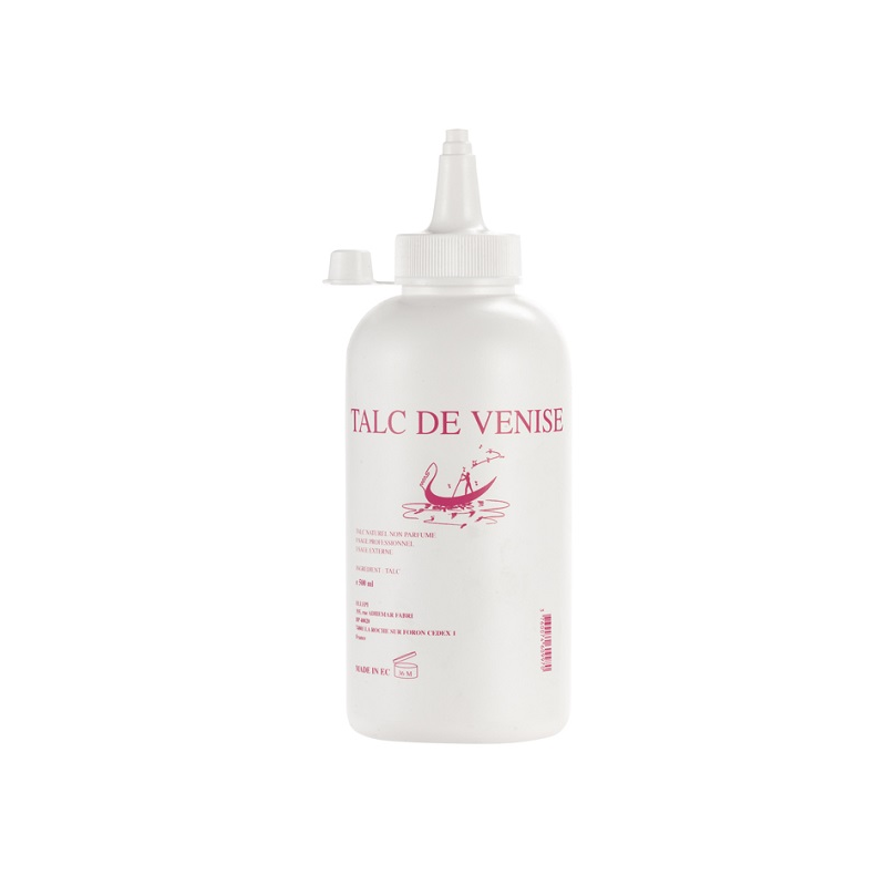 Botella de polvos de talco para rellenar los cepillos de talco. Contiene 500 ml.