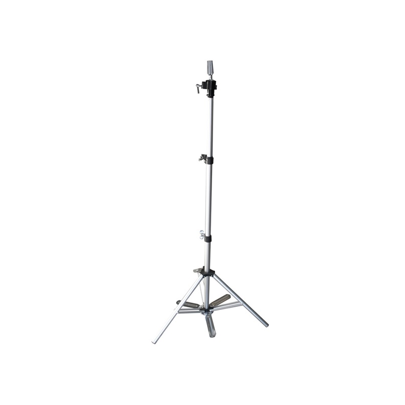 Soporte de trípode de aluminio para sostener la cabeza de maniquí de peluqueria, en la posición